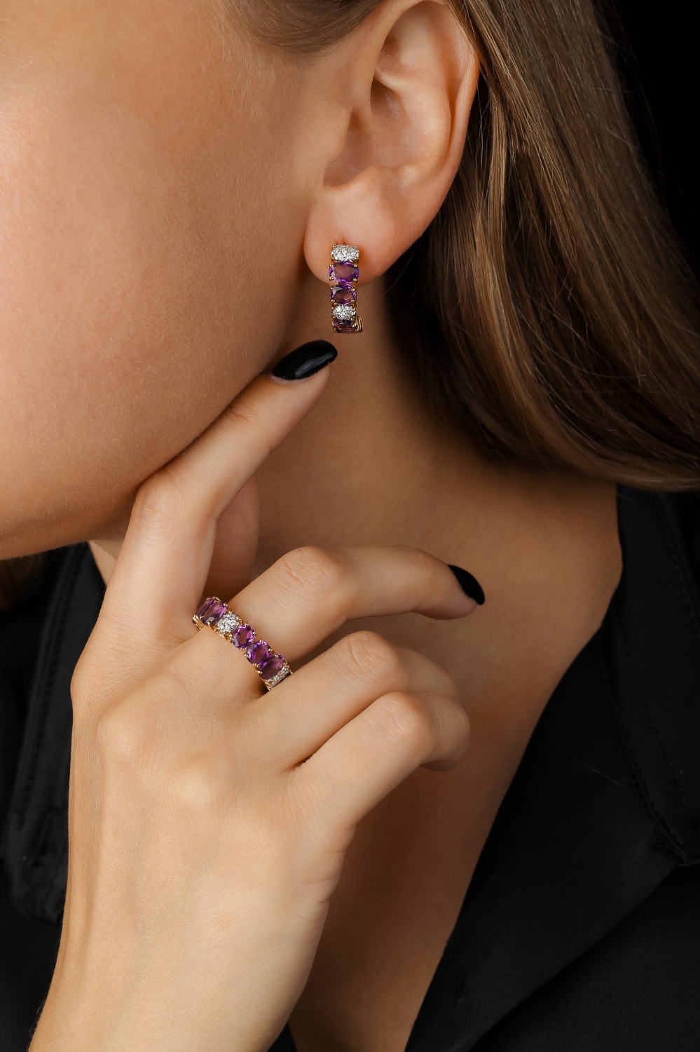 В BRITZO аметист представлен в украшениях, которые отлично подходят для тех, кто ценит элегантность и хочет добавить в образ нотку таинственности. Прекрасно смотрится с классическими и вечерними нарядами.