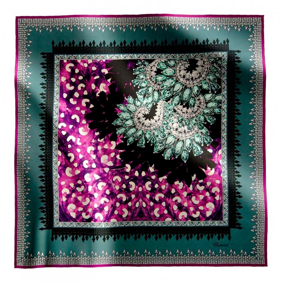 Платок Chopard 90*90 - высококачественный аксессуар, изготовленный из натурального шелка. Украшен дизайнерским принтом, который придает ему утонченность и элегантность. Идеально сочетается с различными нарядами, добавляя шарма и стиля.
